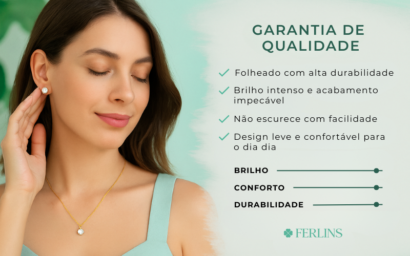Folheados de alta qualidade: brilho duradouro e acabamento perfeito em cada detalhe.